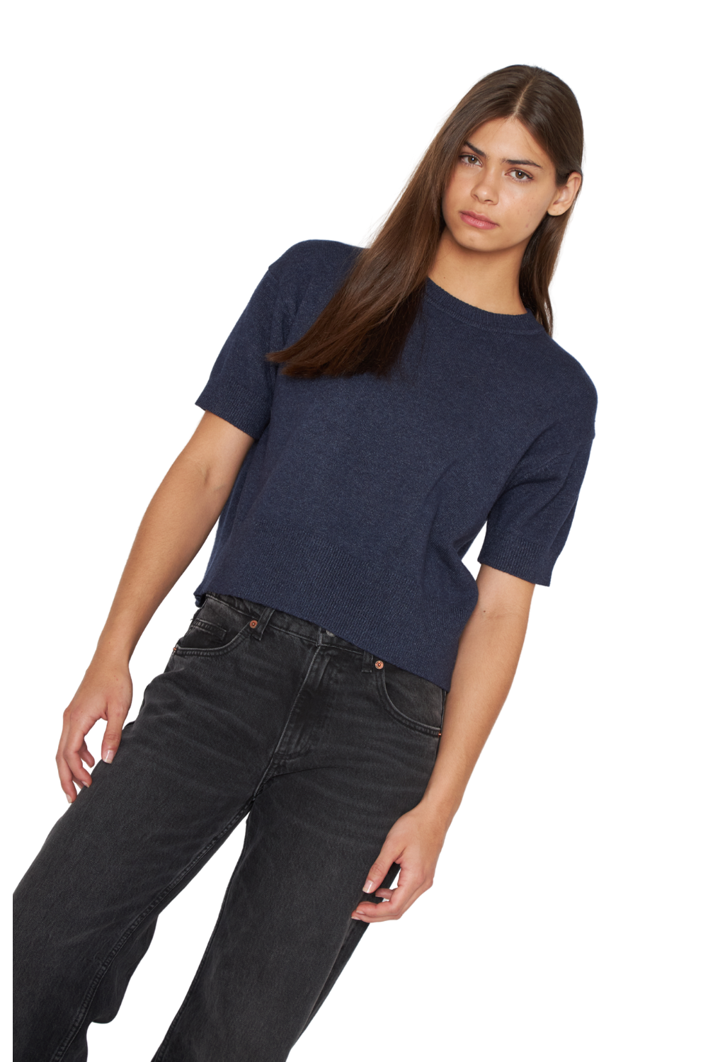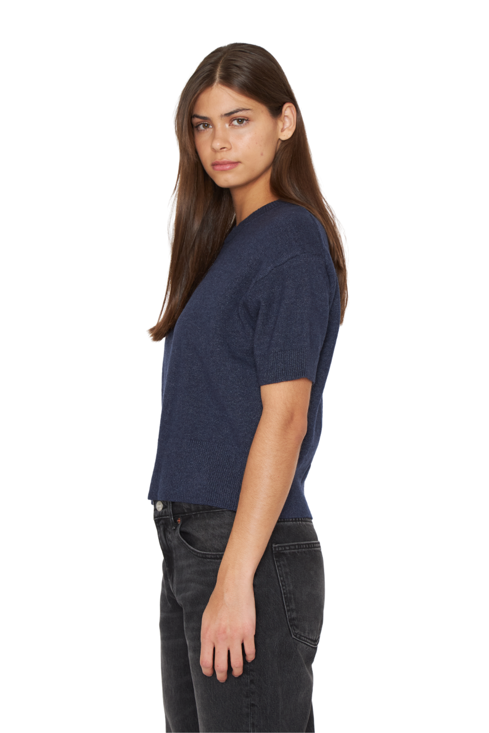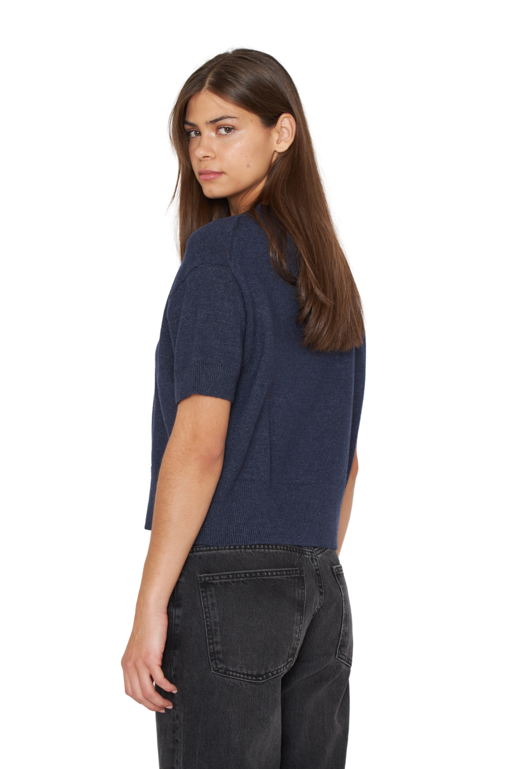 DESCRIPCIÓN: Chaleco cerrado manga corta, tejido grosor medio. Úsalo solo si no hace frío o con una polera/blusa debajo para abrigarte y armar un look por capas