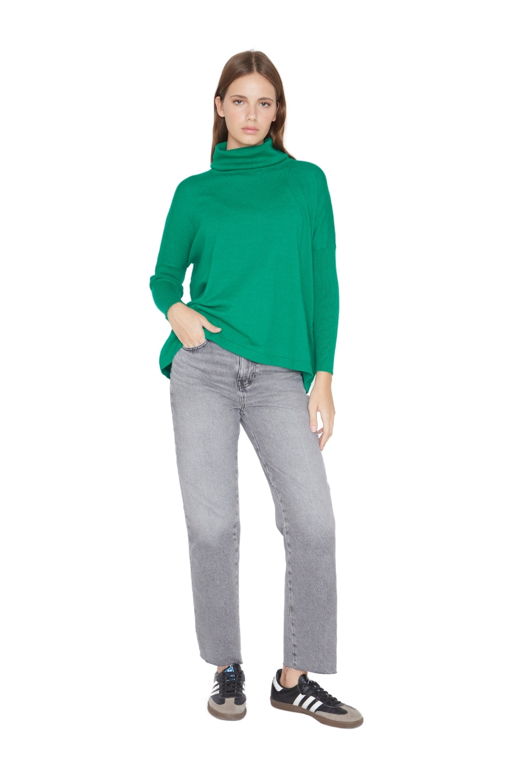 DESCRIPCIÓN: Chaleco cerrado corte acampanado con cuello, tejido grosor medio