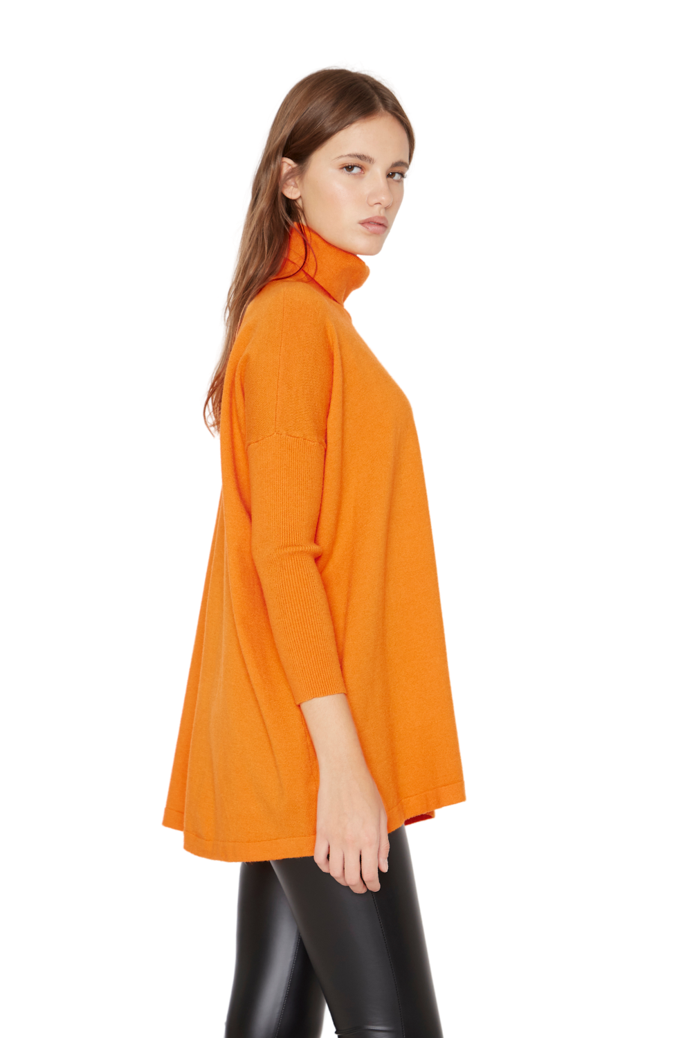 DESCRIPCIÓN: Chaleco largo cerrado corte acampanado con cuello, tejido grosor medio