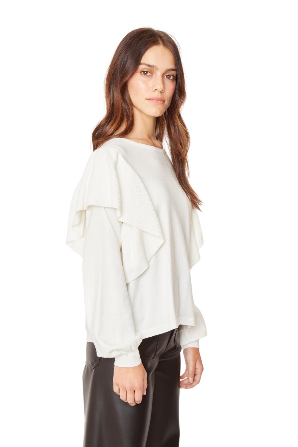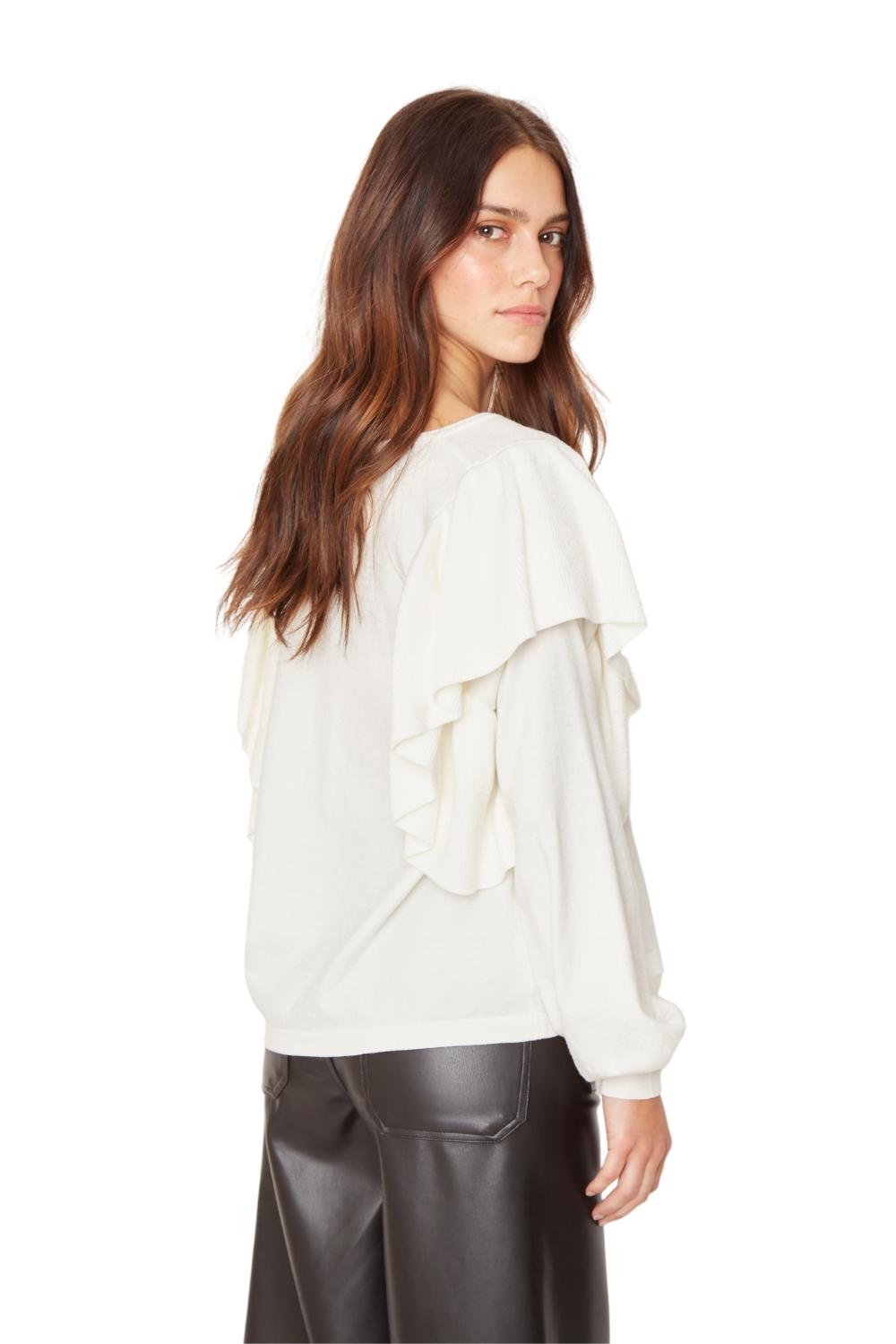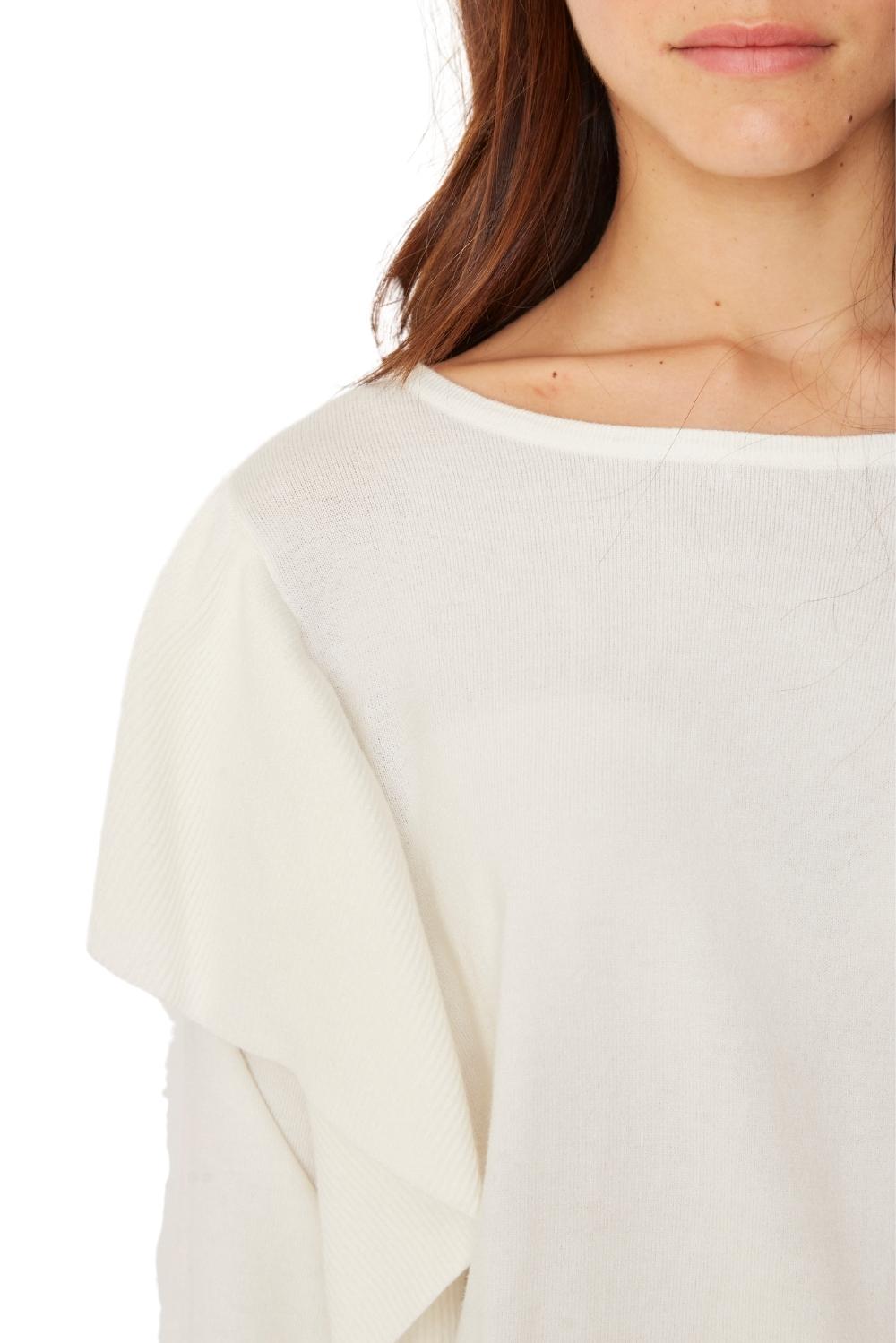 DESCRIPCIÓN: Chaleco cerrado cuello redondo con vuelos tipo alitas, tejido grosor medio