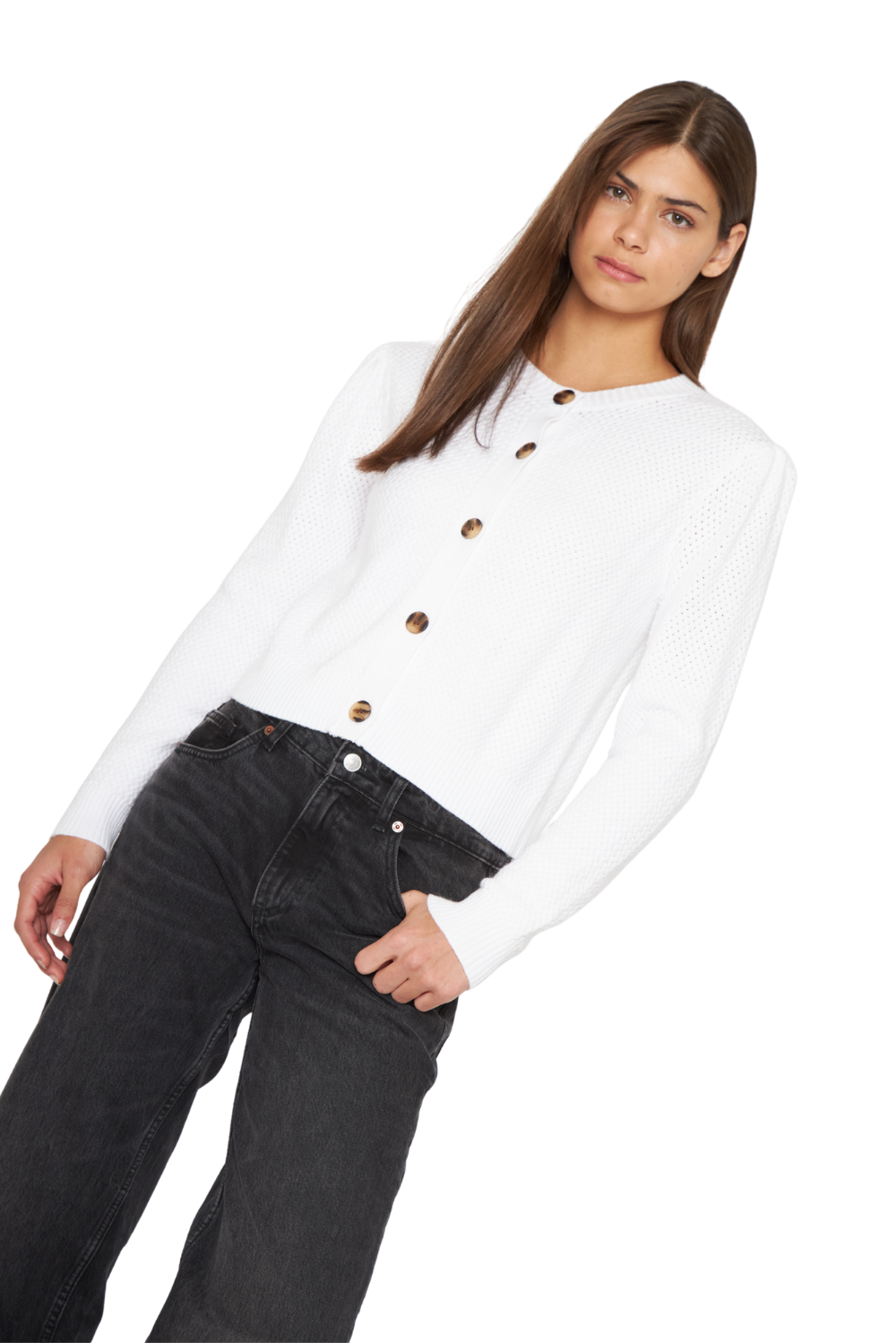 DESCRIPCIÓN: Chaleco cerrado abotonado tejido tipo panal grosor medio, manga larga aglobada