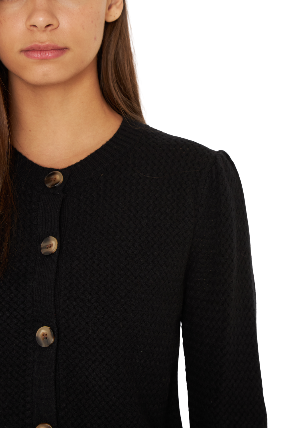 DESCRIPCIÓN: Chaleco cerrado abotonado tejido tipo panal grosor medio, manga larga aglobada