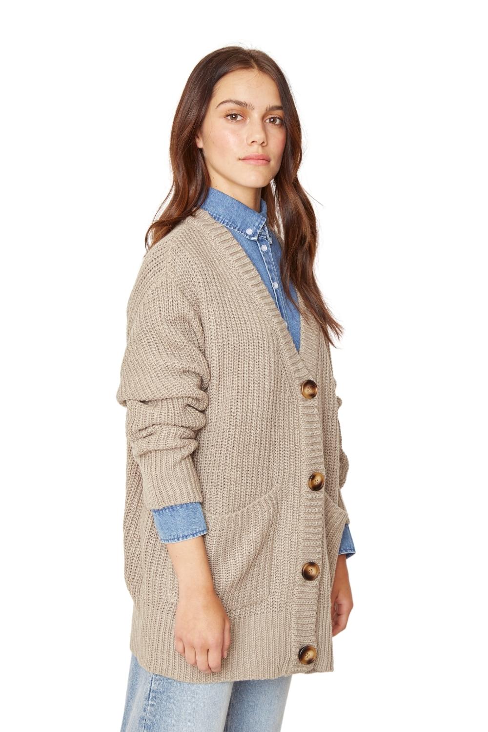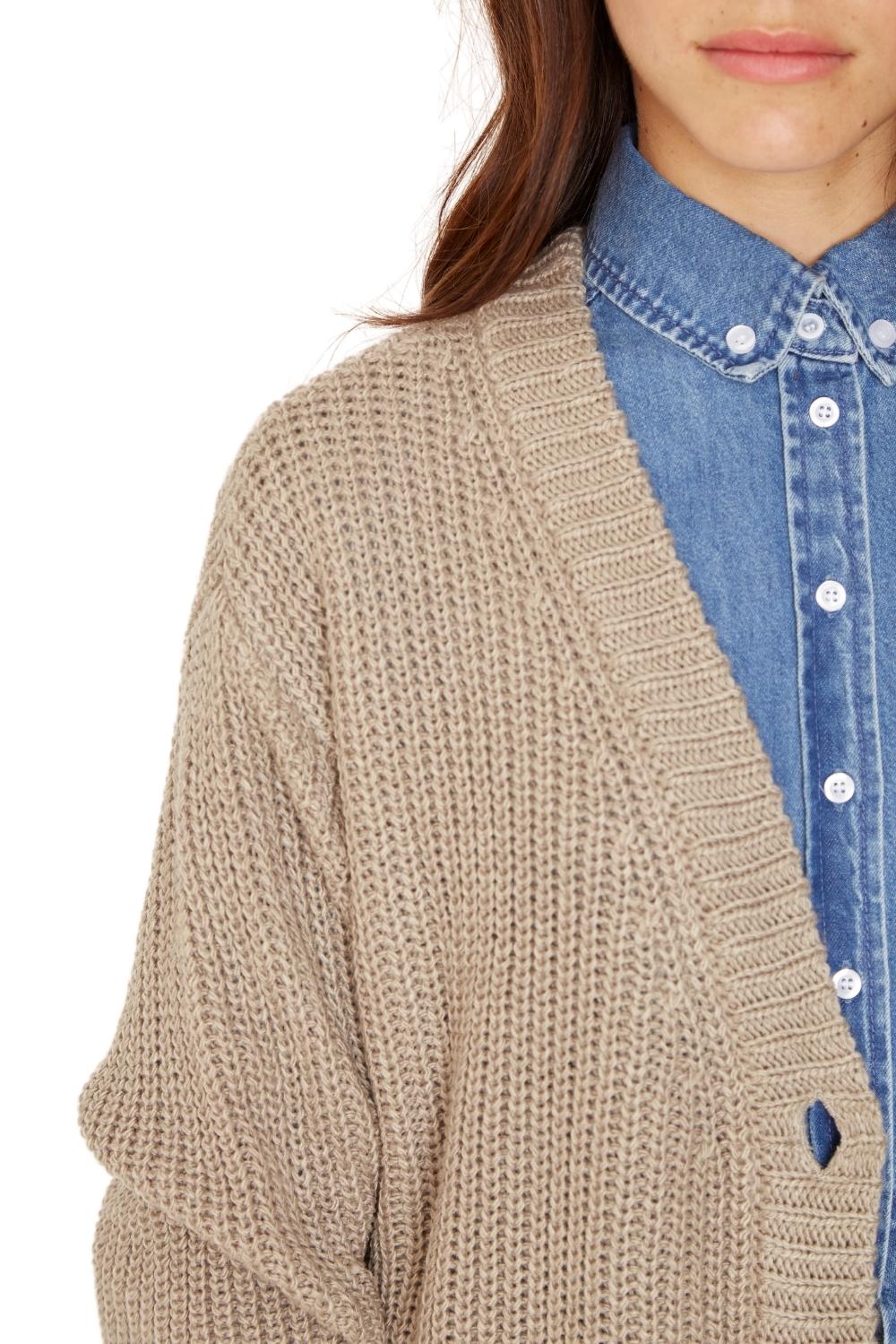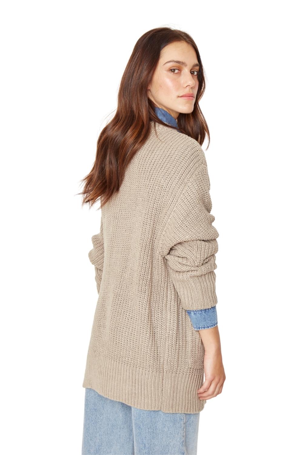 DESCRIPCIÓN: Chaleco largo abierto abotonado con bolsillos frontales, tejido grueso