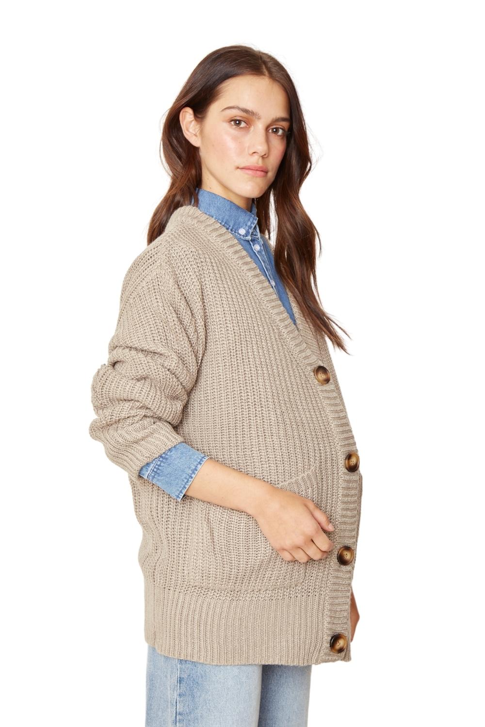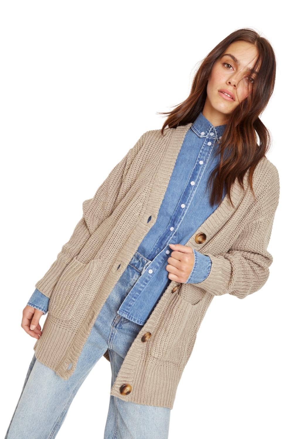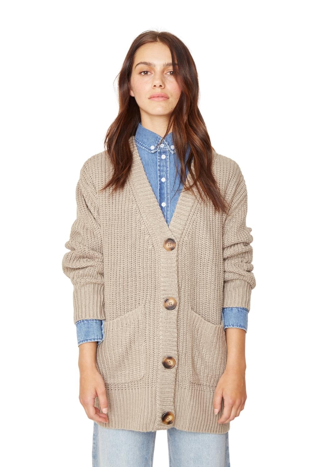 DESCRIPCIÓN: Chaleco largo abierto abotonado con bolsillos frontales, tejido grueso