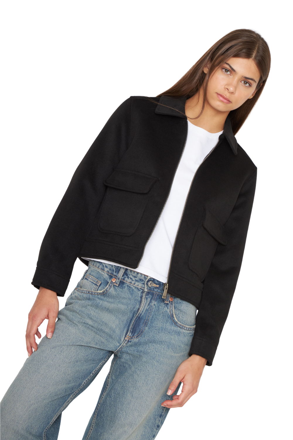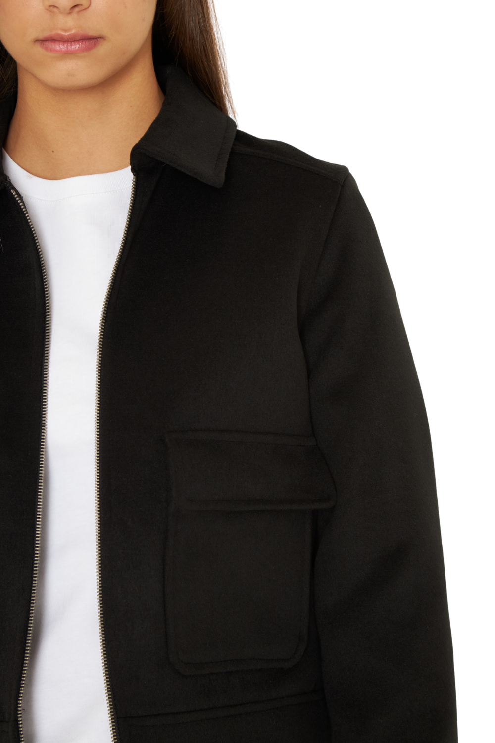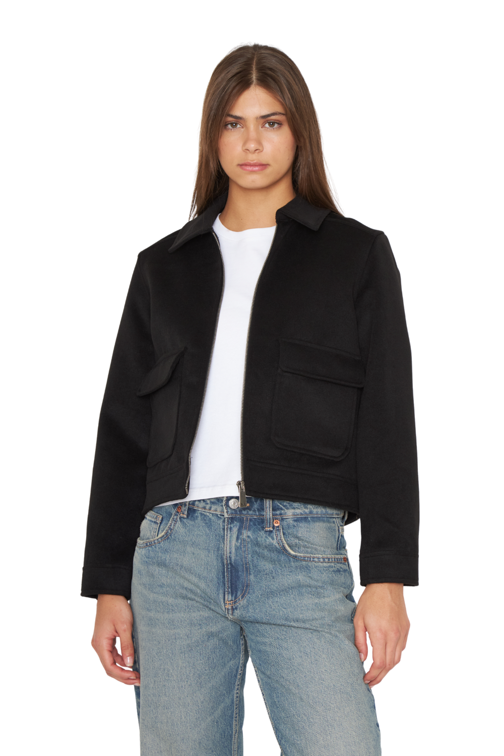 DESCRIPCIÓN: Chaqueta cuello camisero con cierre, bolsillos frontales funcionales con solapa y broche, manga larga con puño y botón