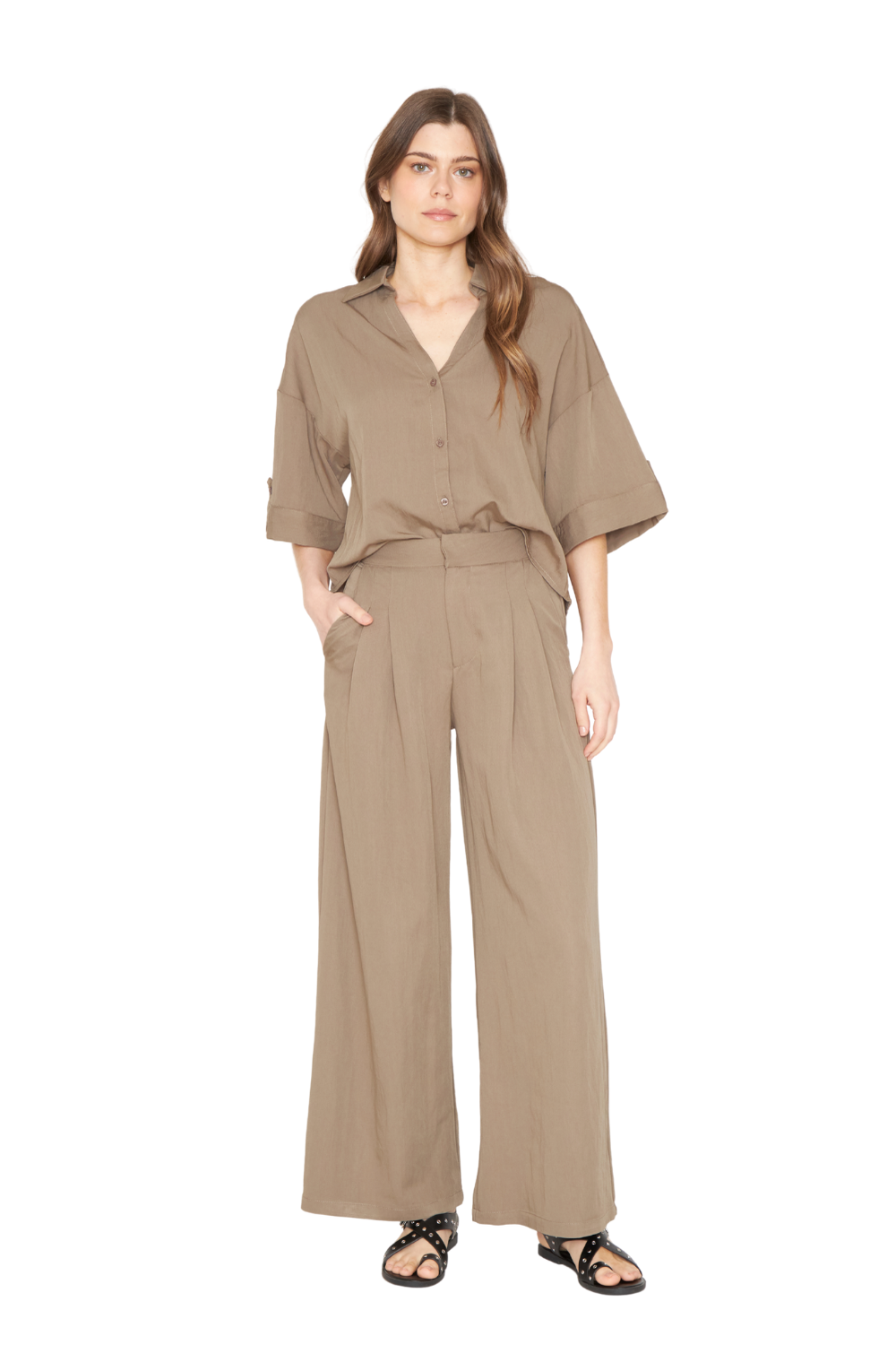 DESCRIPCIÓN: Pantalón sastrero con cierre, broche y bolsillos laterales