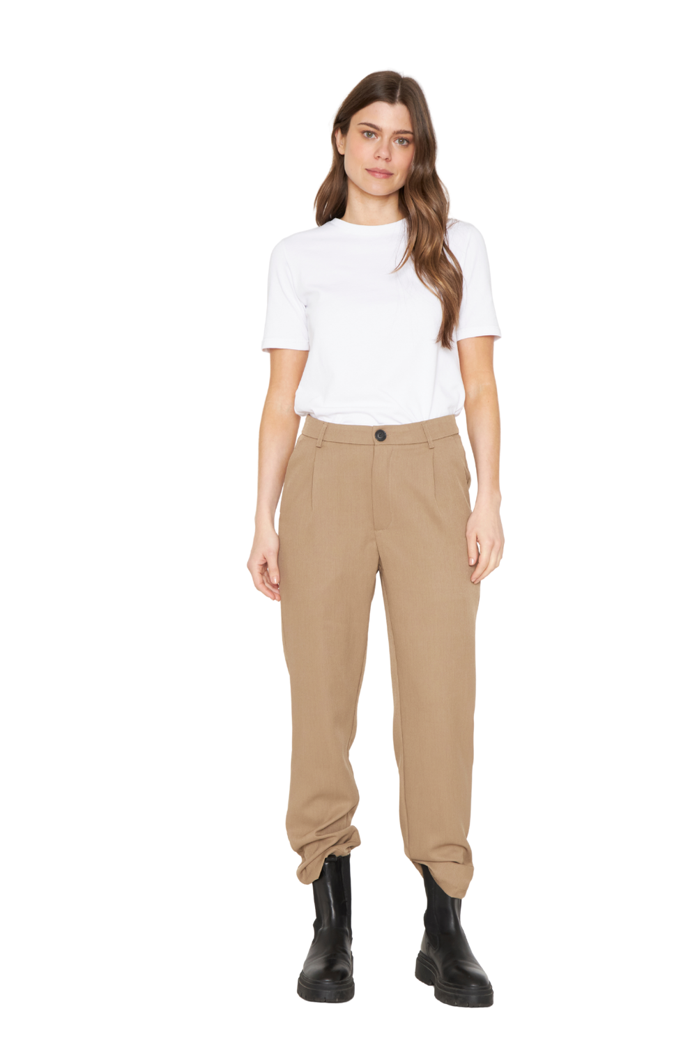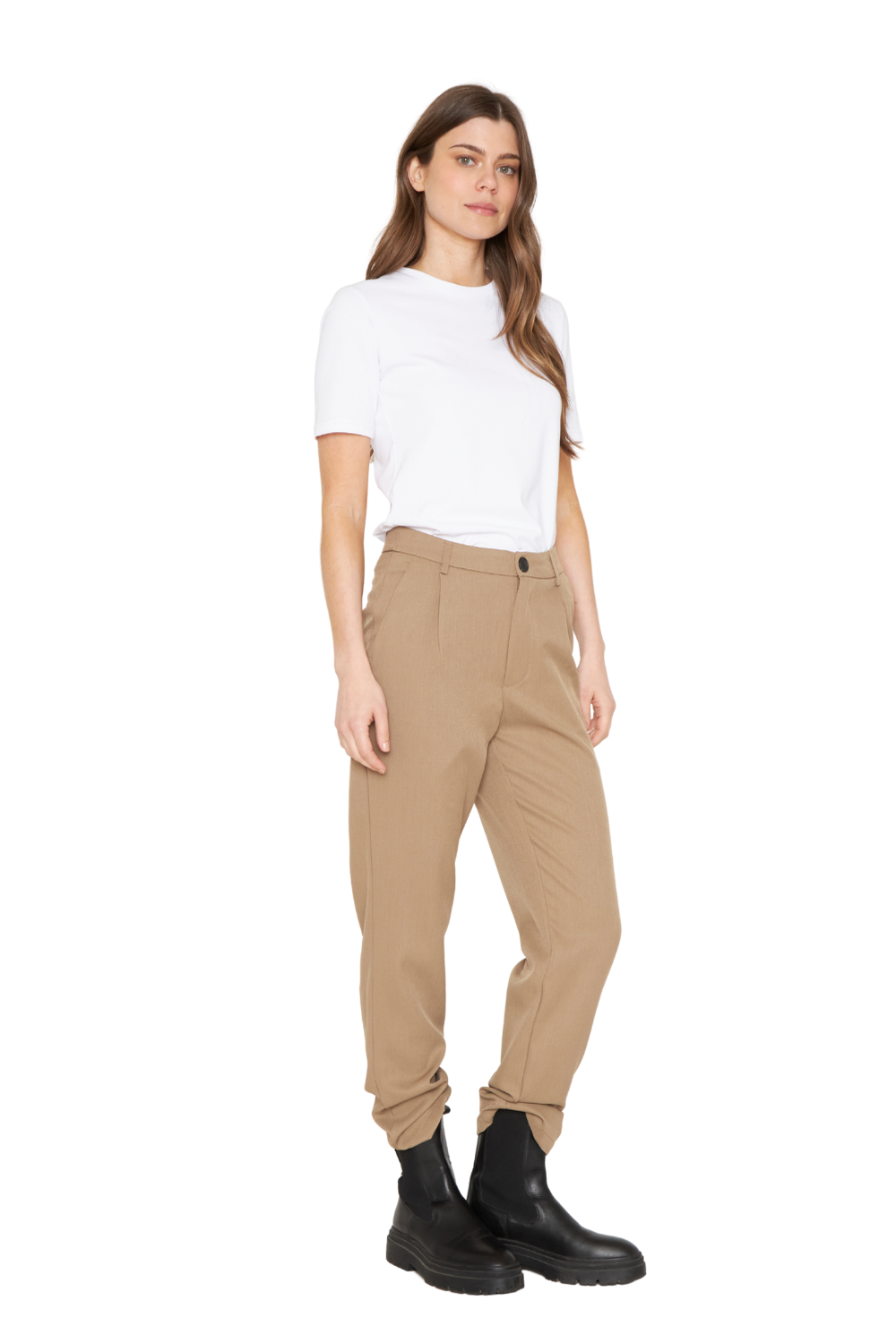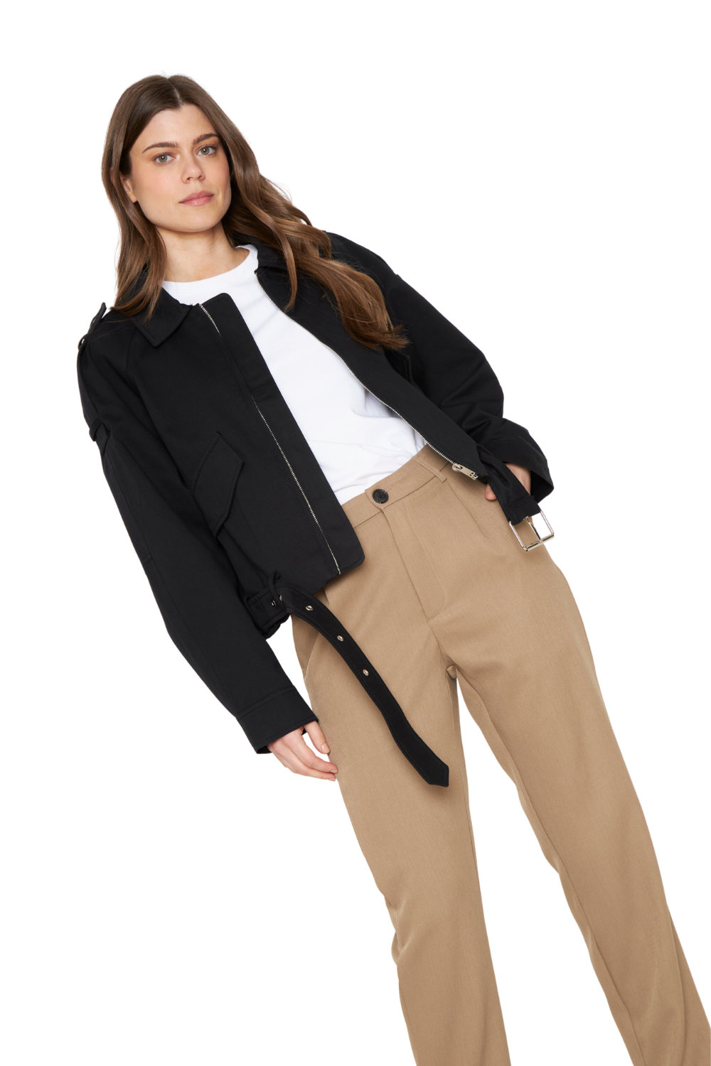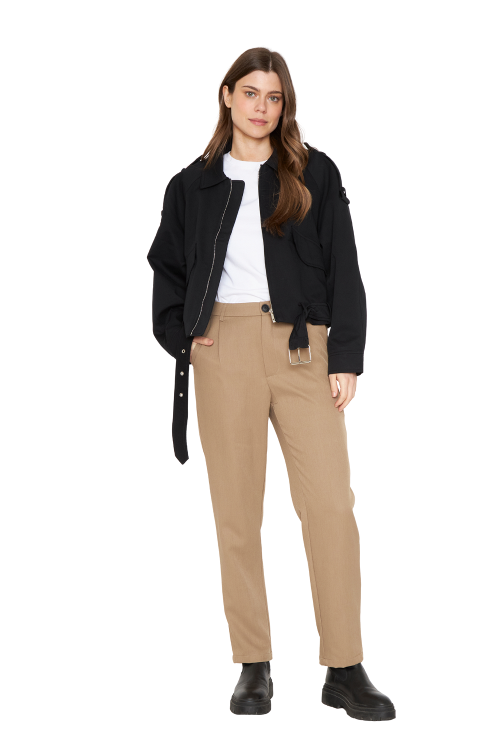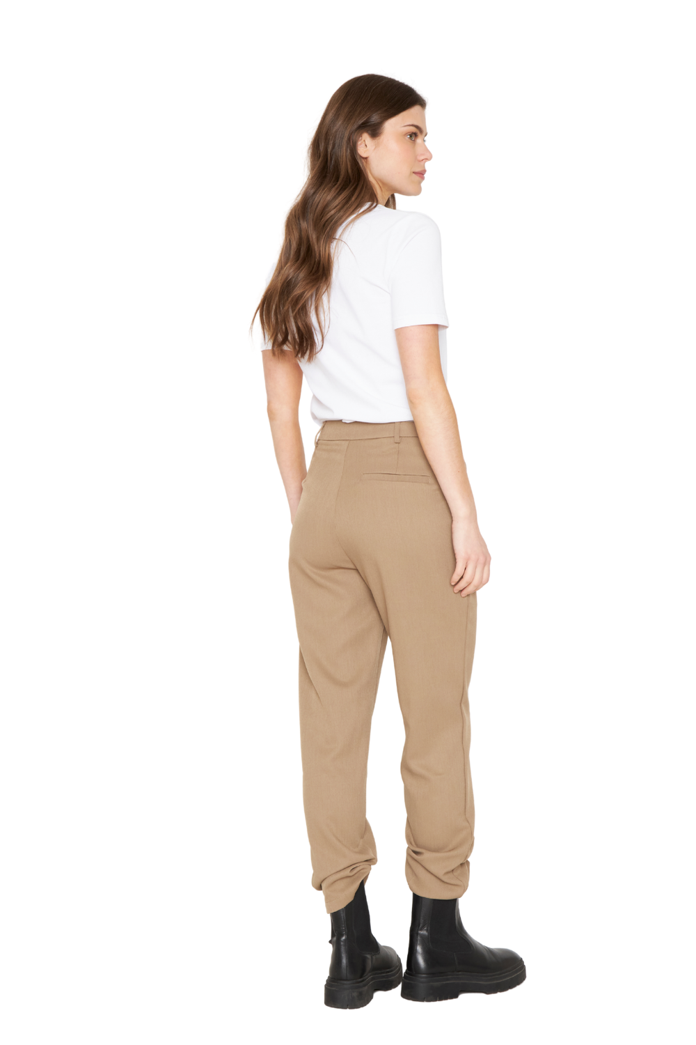 DESCRIPCIÓN: Pantalón sastrero con botón superior, cierre, bolsillos laterales funcionales y bolsillos falsos traseros