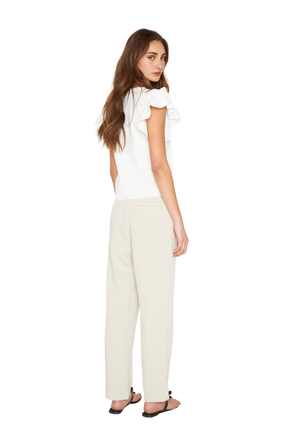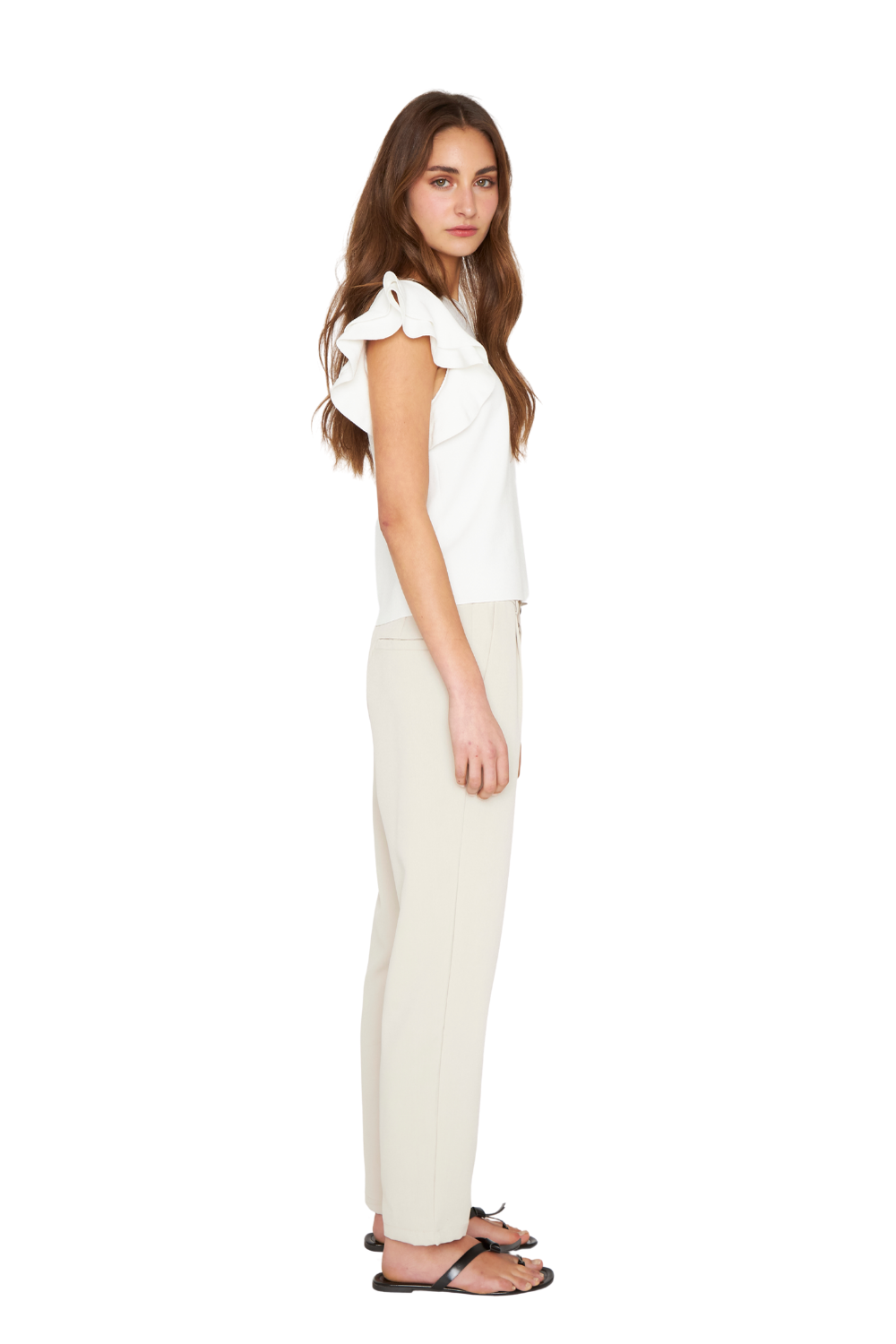 DESCRIPCIÓN: Pantalón sastrero con botón superior, cierre, bolsillos laterales funcionales y bolsillos falsos traseros