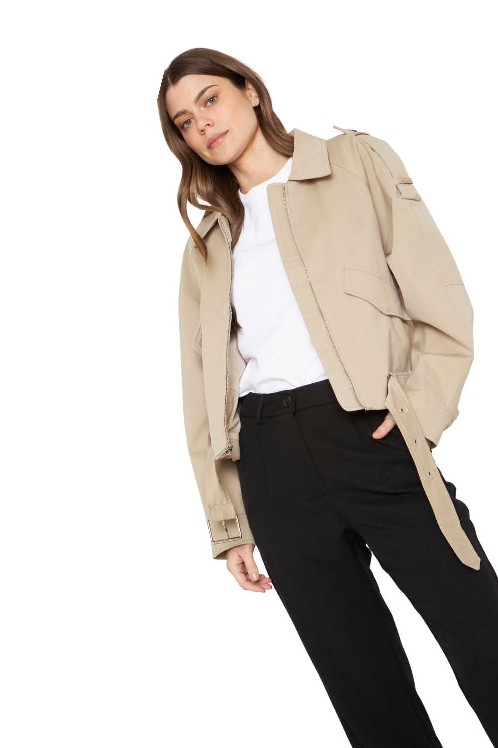 DESCRIPCIÓN: Pantalón sastrero con botón superior, cierre, bolsillos laterales funcionales y bolsillos falsos traseros