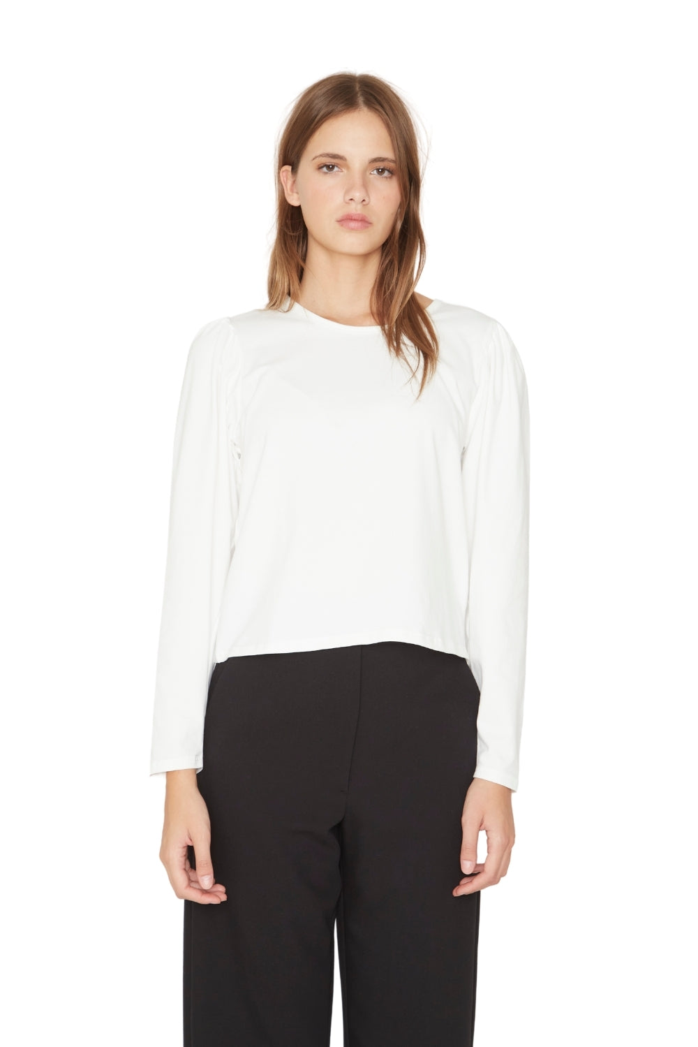 DESCRIPCIÓN: Polera cuello redondo hombros plisados