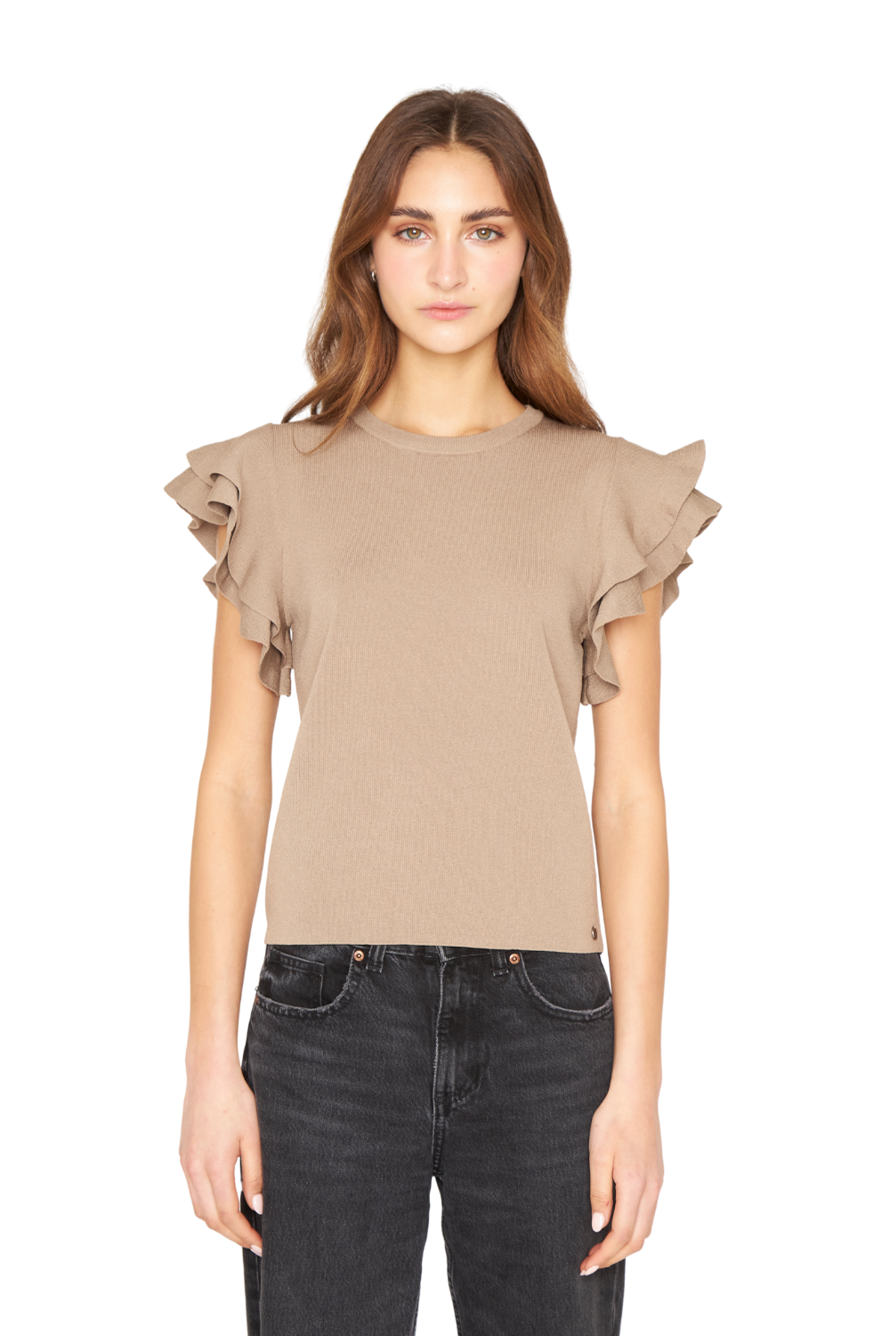 DESCRIPCIÓN: Polera tejida manga corta tipo alitas, ideal para darle un toque femenino y a la vez sofisticado a tu look