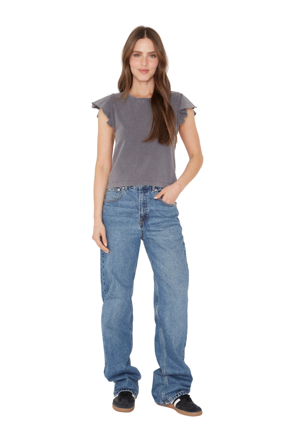 DESCRIPCIÓN: Polera con vuelos en las mangas tipo alitas