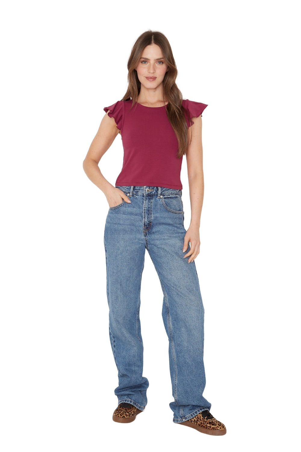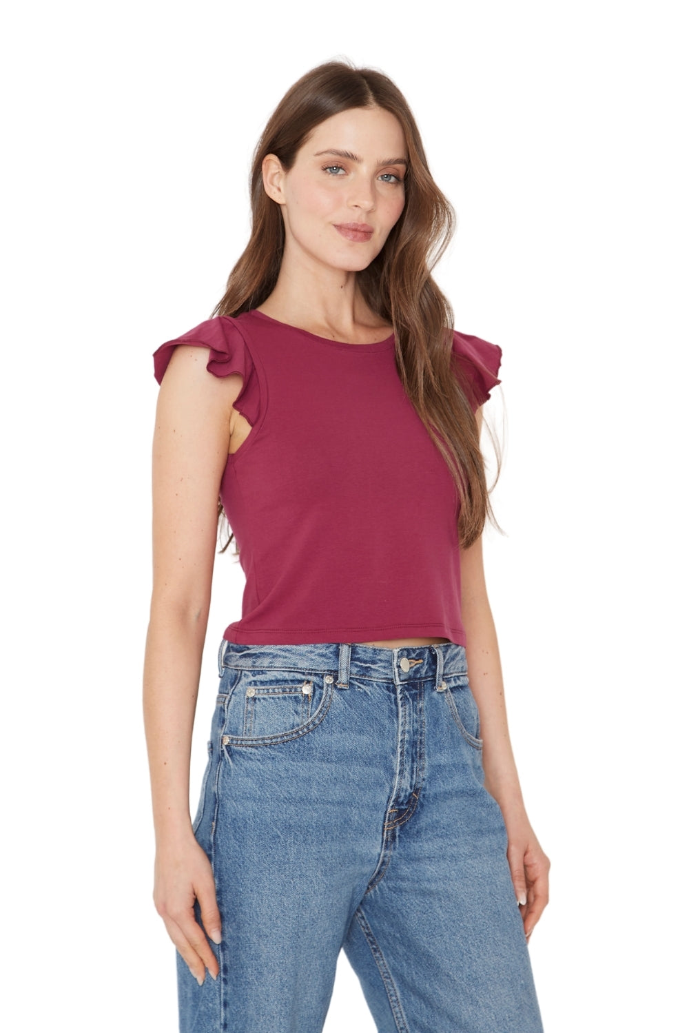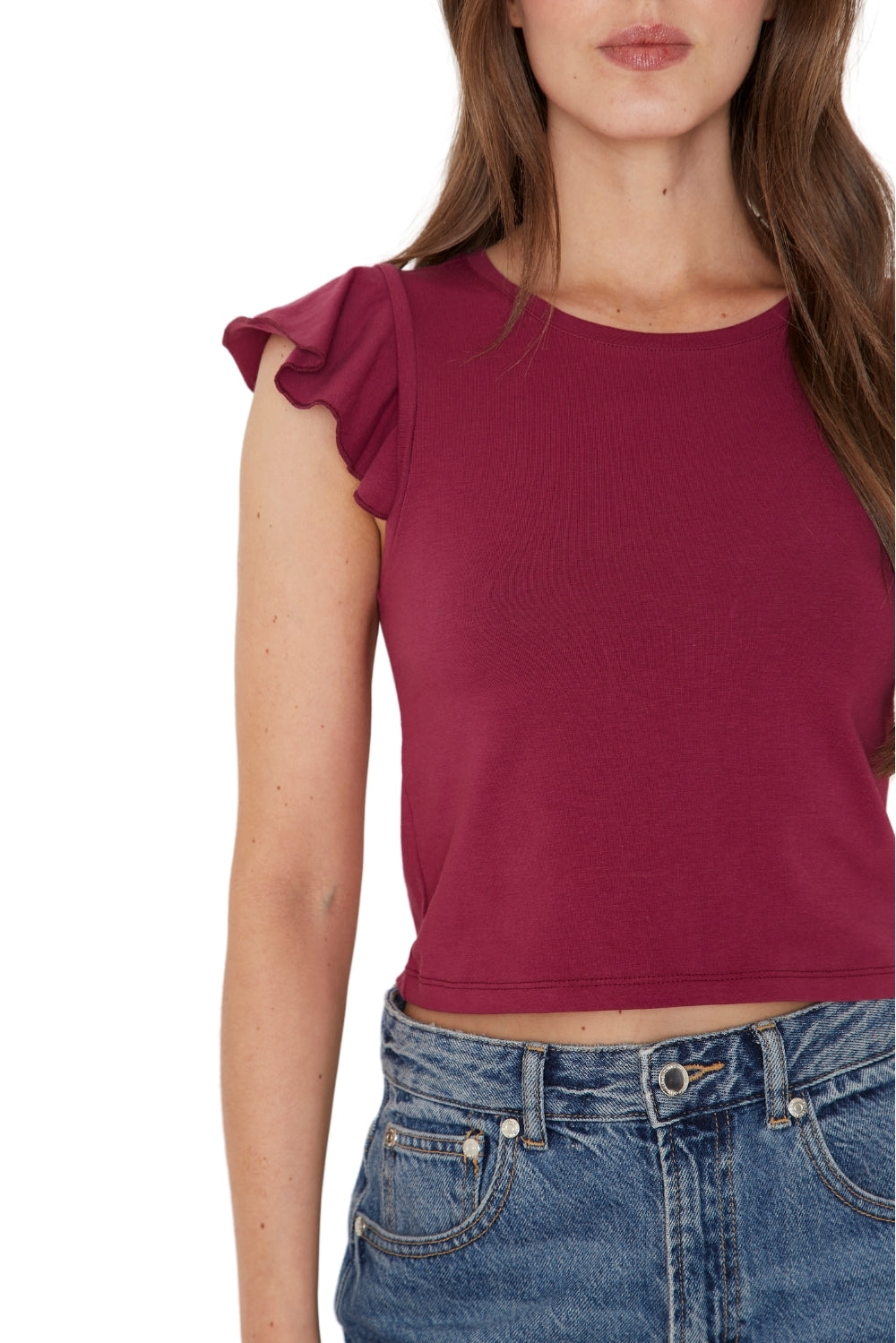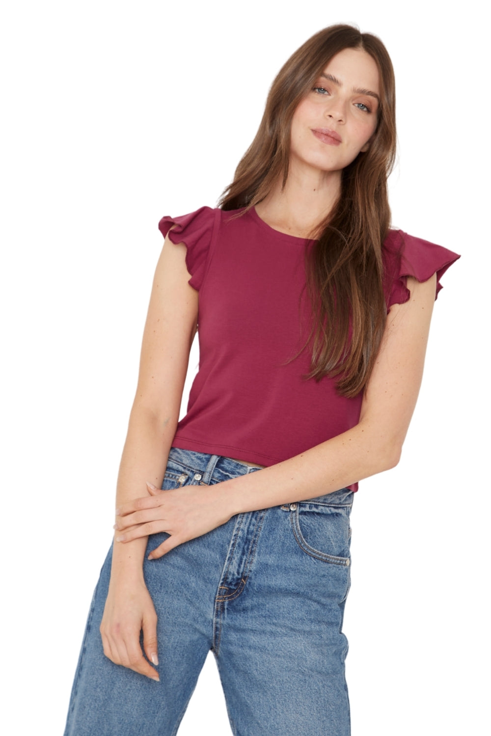 DESCRIPCIÓN: Polera con vuelos en las mangas tipo alitas