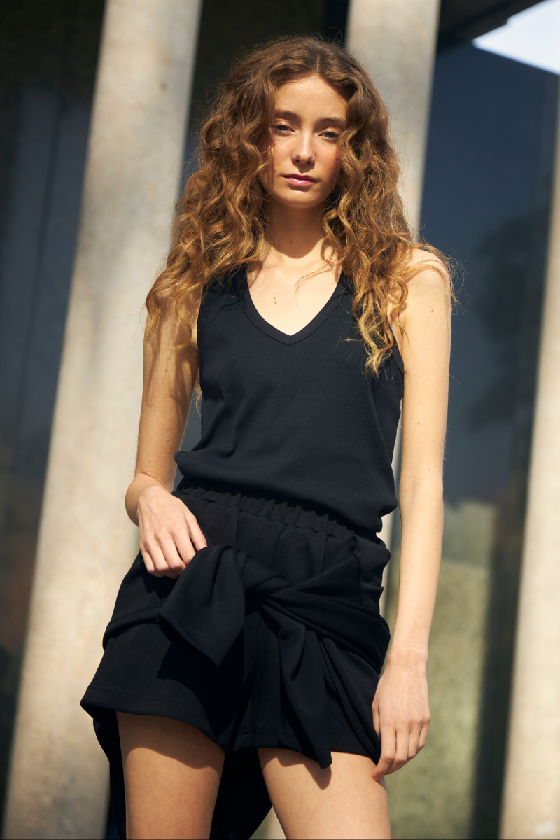 DESCRIPCIÓN: Polera sin mangas elasticada cuello en v