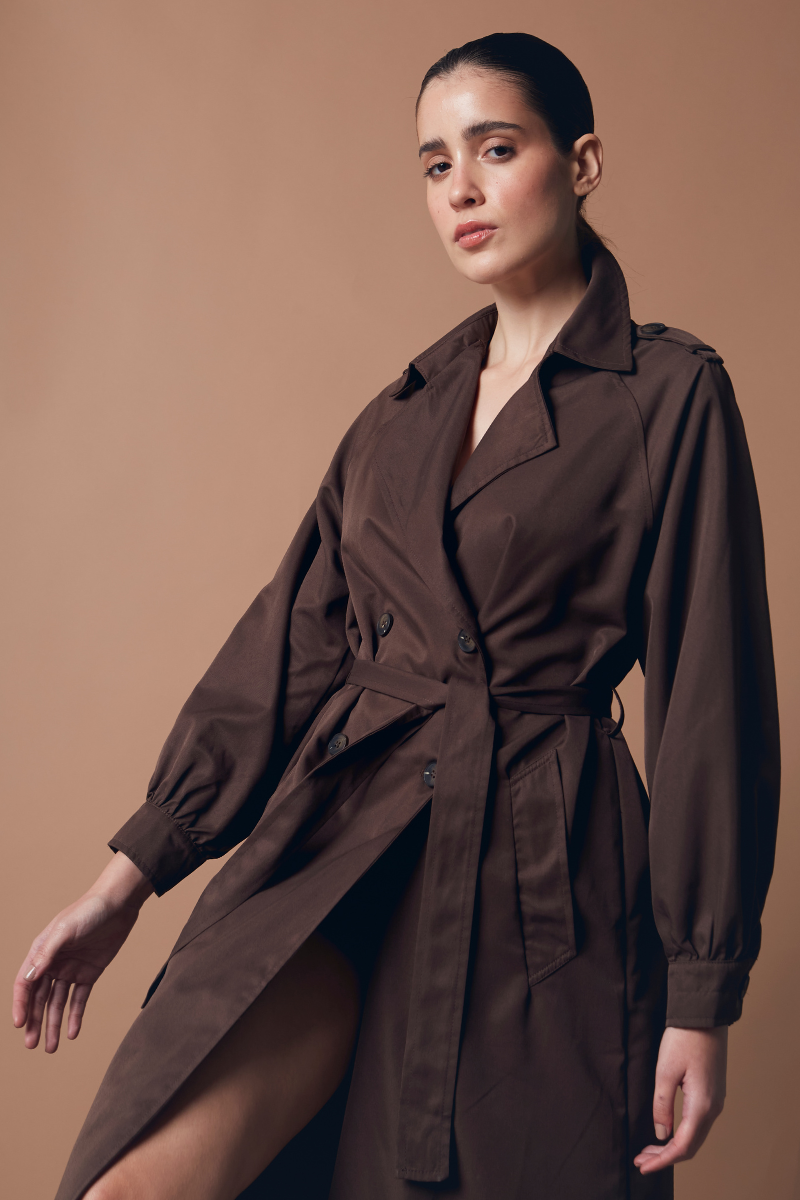 DESCRIPCIÓN: Trench largo abotonado con bolsillos funcionales, presillas y lazo anudable, interior sin forro con terminación francesa en costuras. El trench liviano perfecto para este otoño!