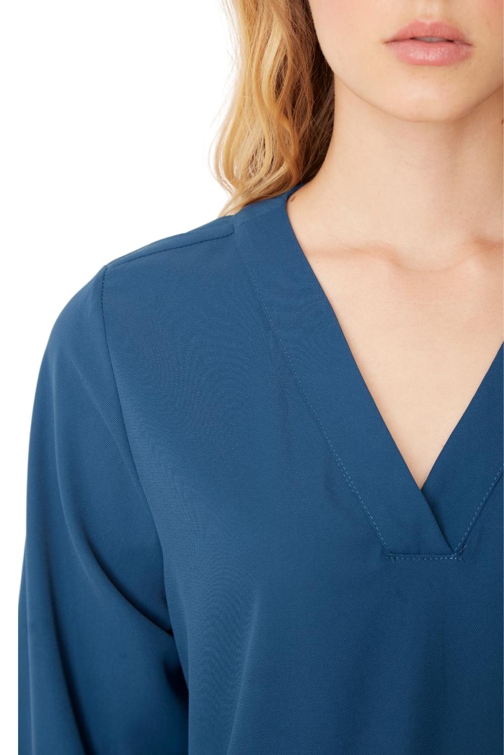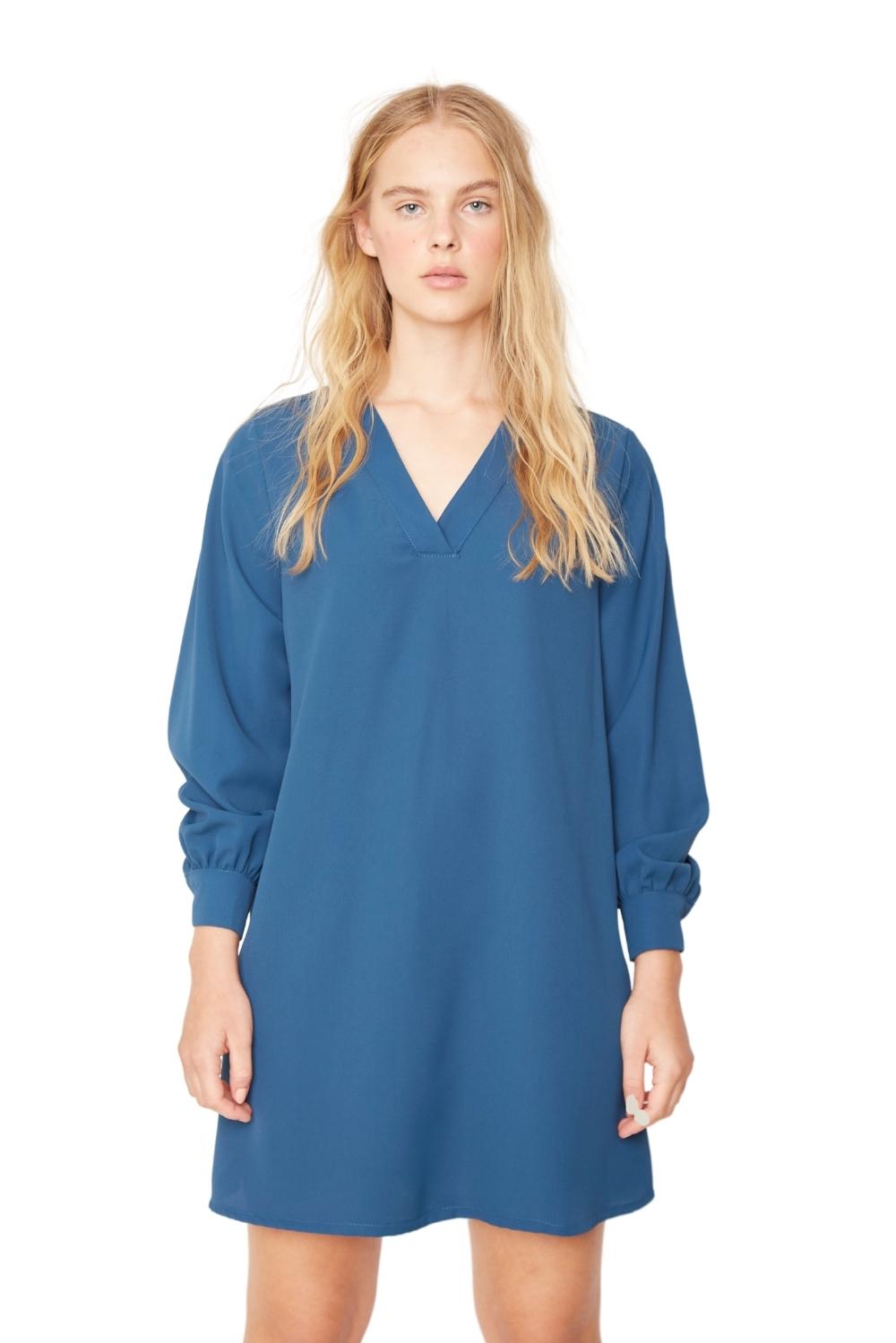 DESCRIPCIÓN: Vestido cuello en v con botón en el puño de la manga